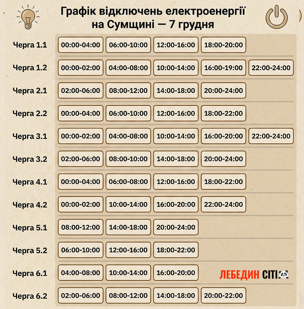 У неділю, 7 грудня, на Сумщині діятимуть графіки погодинних відключень електроенергії .