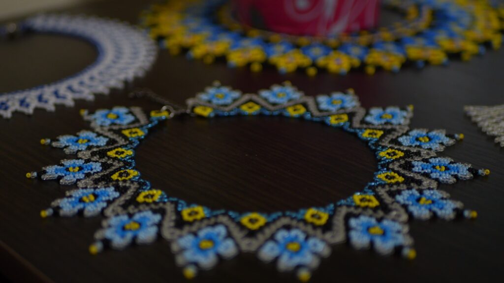 Захоплення вишиванням розпочалося ще в юності, коли тітка навчила пані Ларису перших стібків. Згодом з’явилася любов до бісеру, який вона вміло поєднує у своїх роботах.