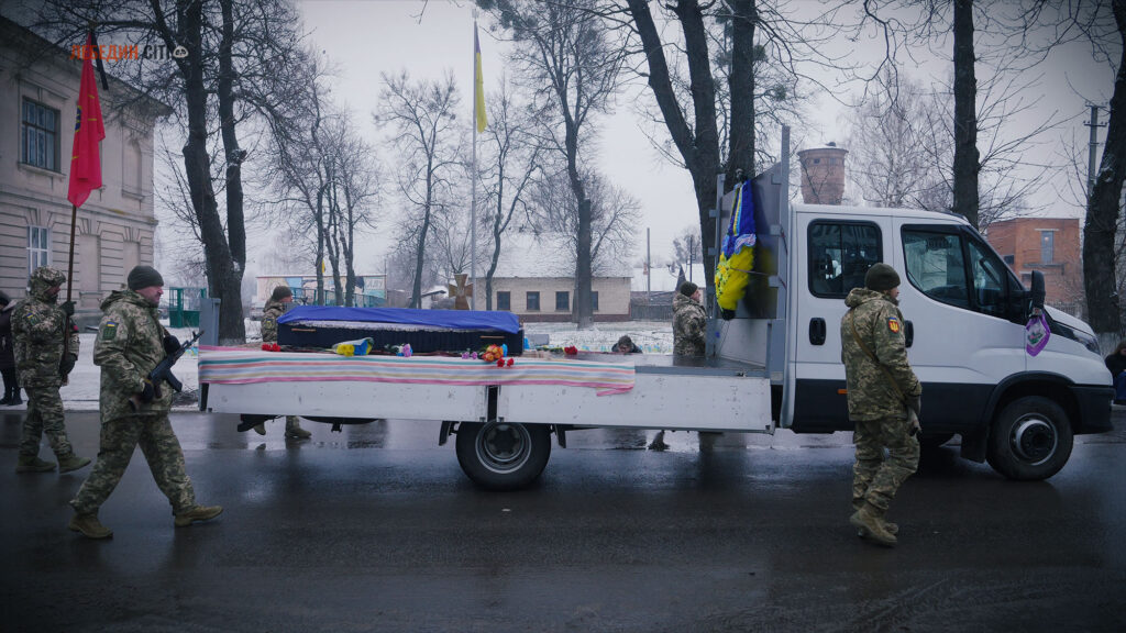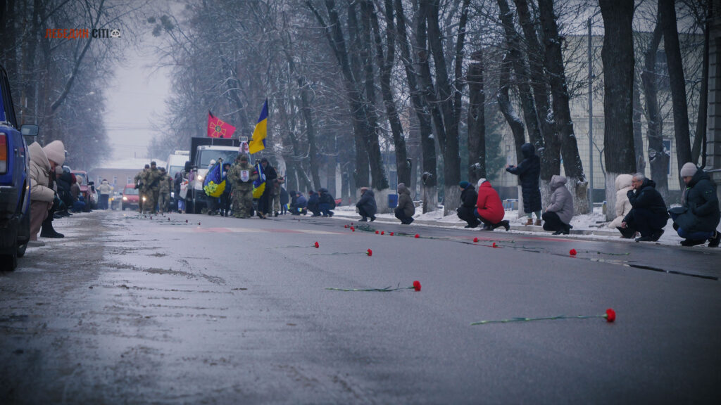 Жителі міста, рідні, друзі та побратими зібралися, щоб віддати останню шану воїну, який поклав своє життя за мирне небо над нами.