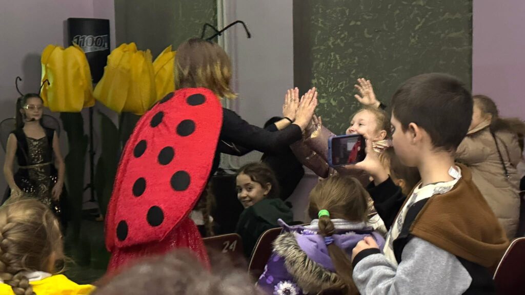 Вистава не обмежилася лише сценою — це було справжнє інтерактивне шоу. Актори активно взаємодіяли з маленькими глядачами в залі: залучали до веселих ігор та танців. Особливе захоплення у малечі викликали рухливі розваги, де всі разом водили «паровозик» та гралися з різнокольоровими повітряними кульками, якими наприкінці наповнилася зала.