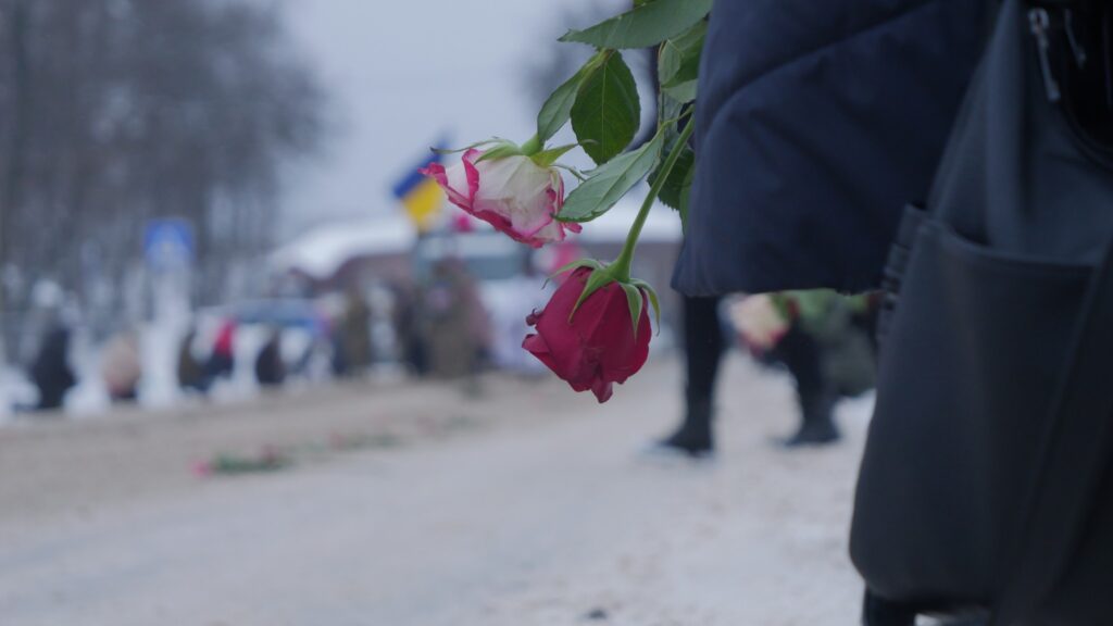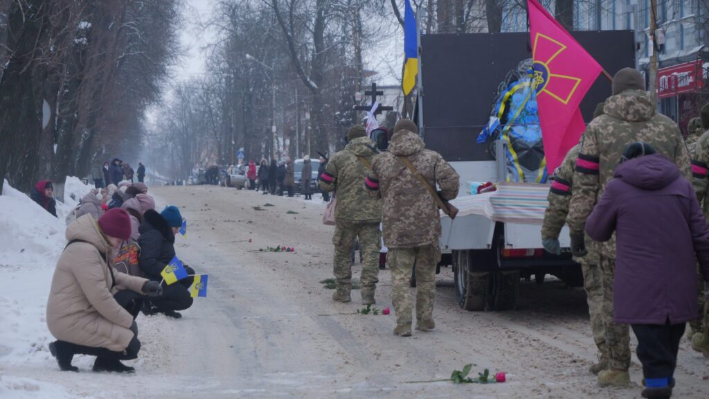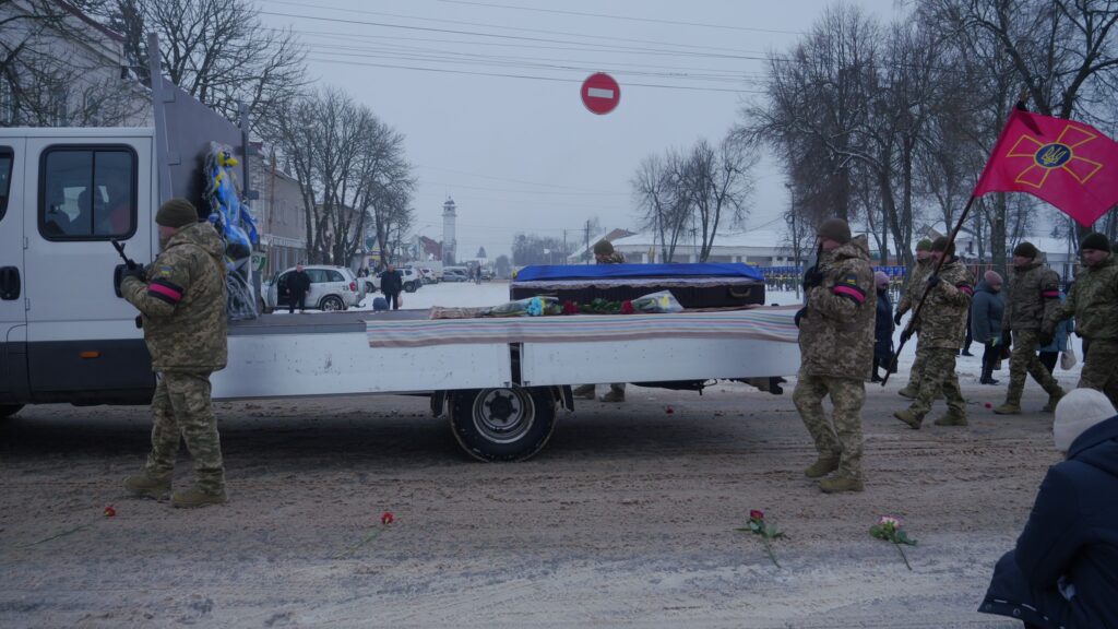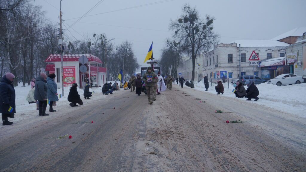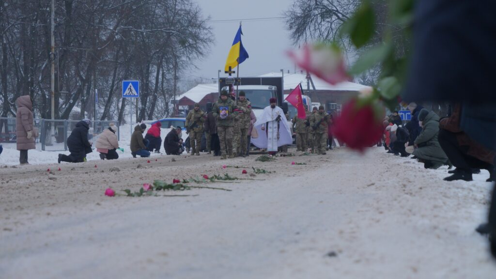 Мешканці громади схилили голови у спільній молитві, проводжаючи захисника «живим коридором».