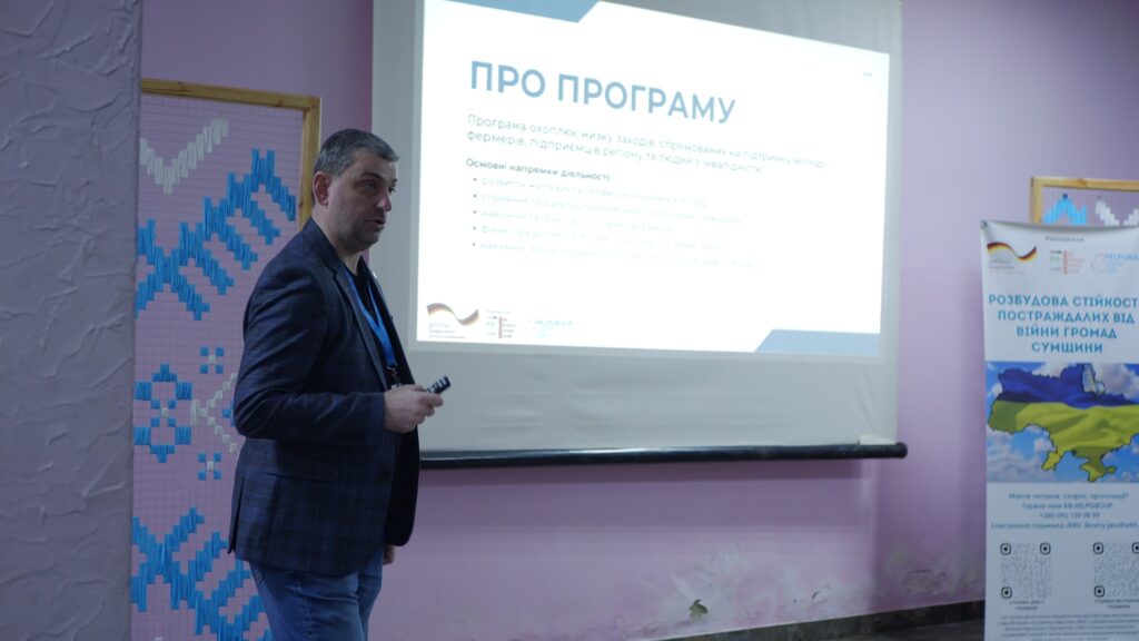 Проєкт «Розбудова стійкості постраждалих від війни громад Сумщини» фінансується Федеральним міністерством економічного співробітництва та розвитку Німеччини та реалізується благодійним фондом HelpGroup у партнерстві з JERU (Спільне реагування на надзвичайні ситуації в Україні міжнародних неурядових організацій Welthungerhilfe та Concern Worldwide)